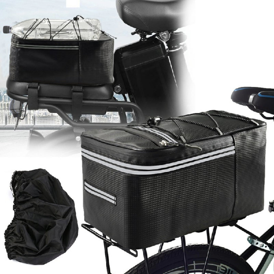 Waterproof Bicycle Rear Seat Bag Cycling Pannier Rack Pack with Reflective Strips & Rain Cover