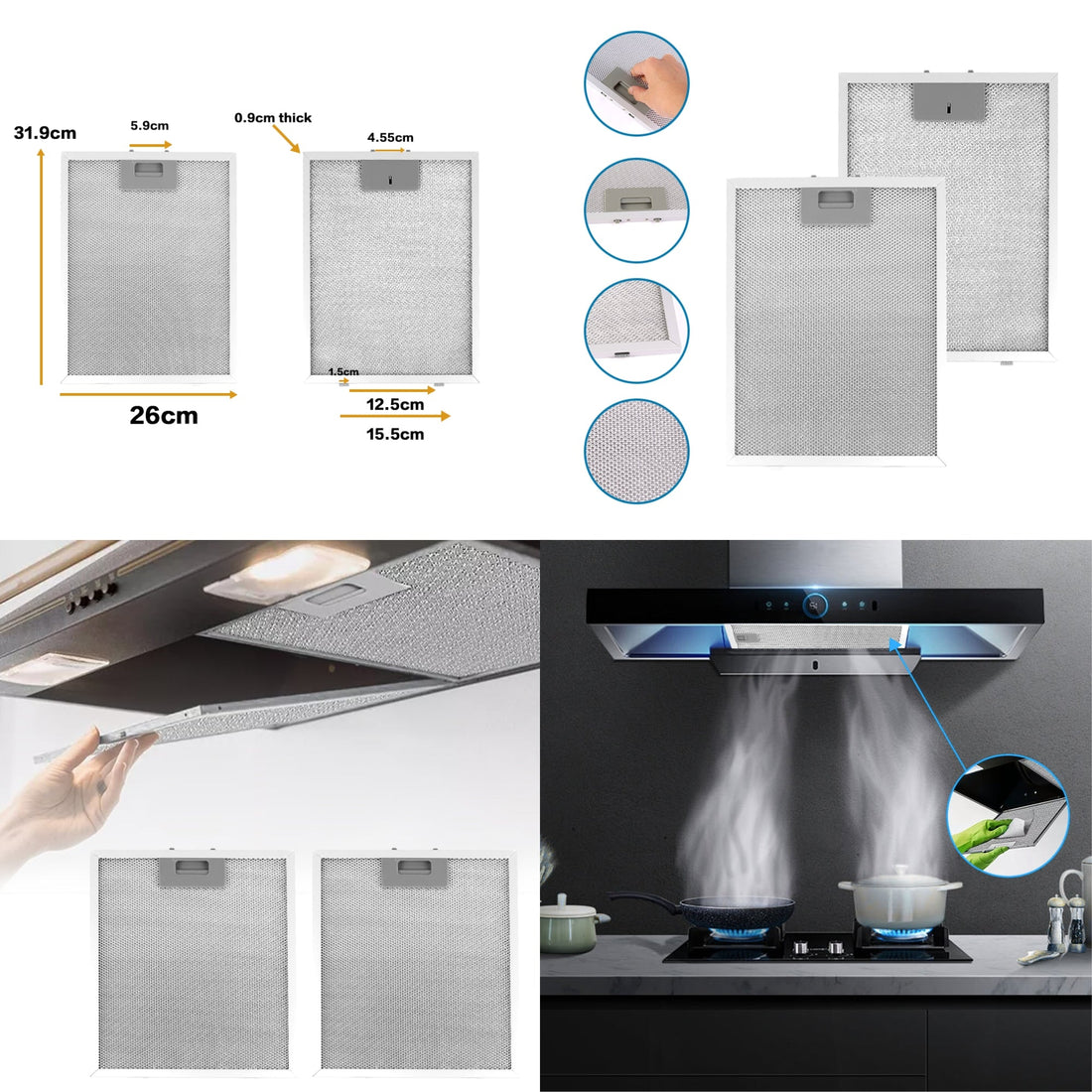 2pcs Metal Mesh Aluminum Cooker Hood Filters – Grease Replacement Set