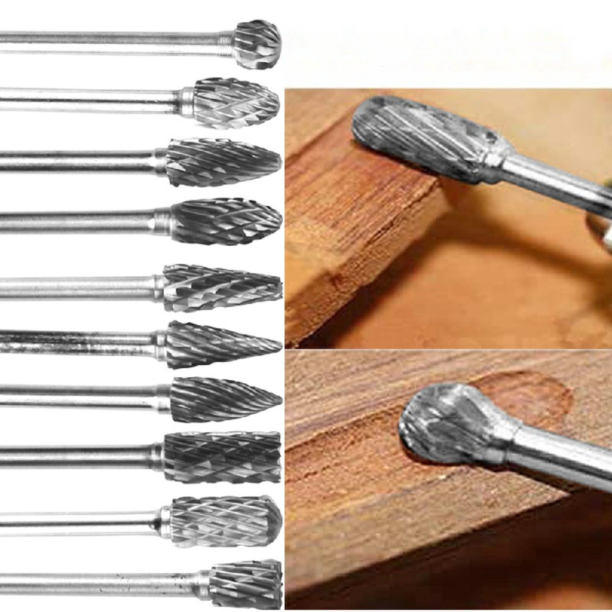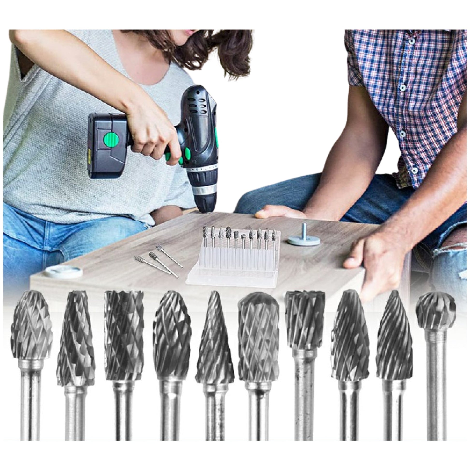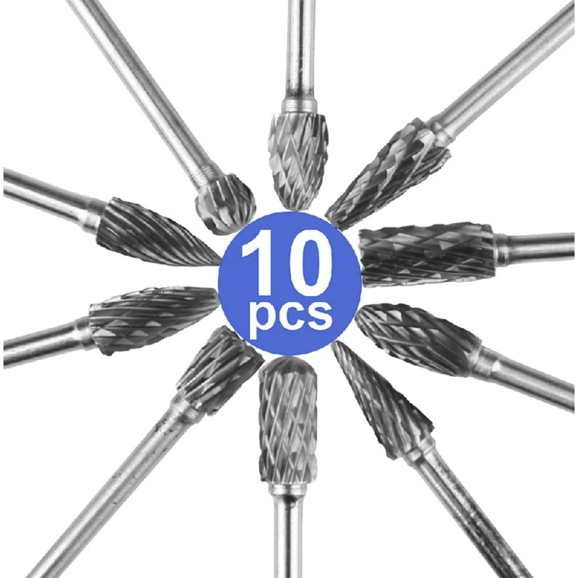 10pcs Tungsten Carbide Rotary Burr Set Die Grinder Bits for Carving & Shaping