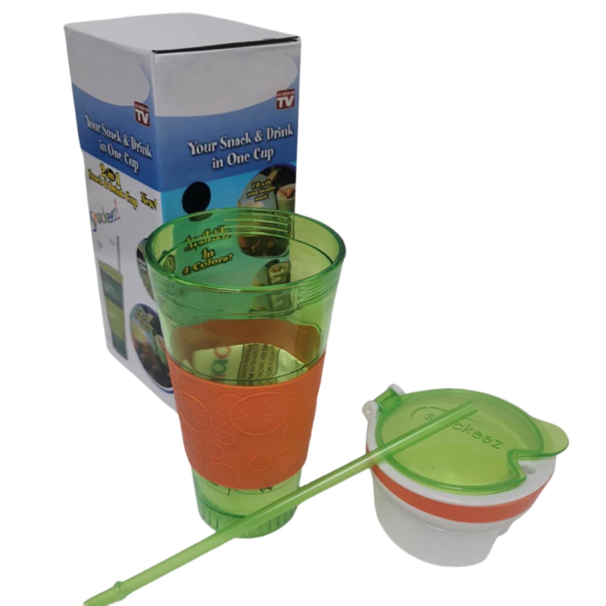 Make snack time smarter with this 2-in-1 Plastic Travel Snack & Drink Cup! This clever tumbler features a dual-compartment design The top holds snacks like popcorn, nuts, or fruit, while the bottom stores your drink. Perfect for car rides, picnics, school lunches, or on-the-go lifestyles. The secure lid prevents leaks, and the durable BPA-free plastic ensures safe, long-term use. Sent in a random colour to keep things fun!