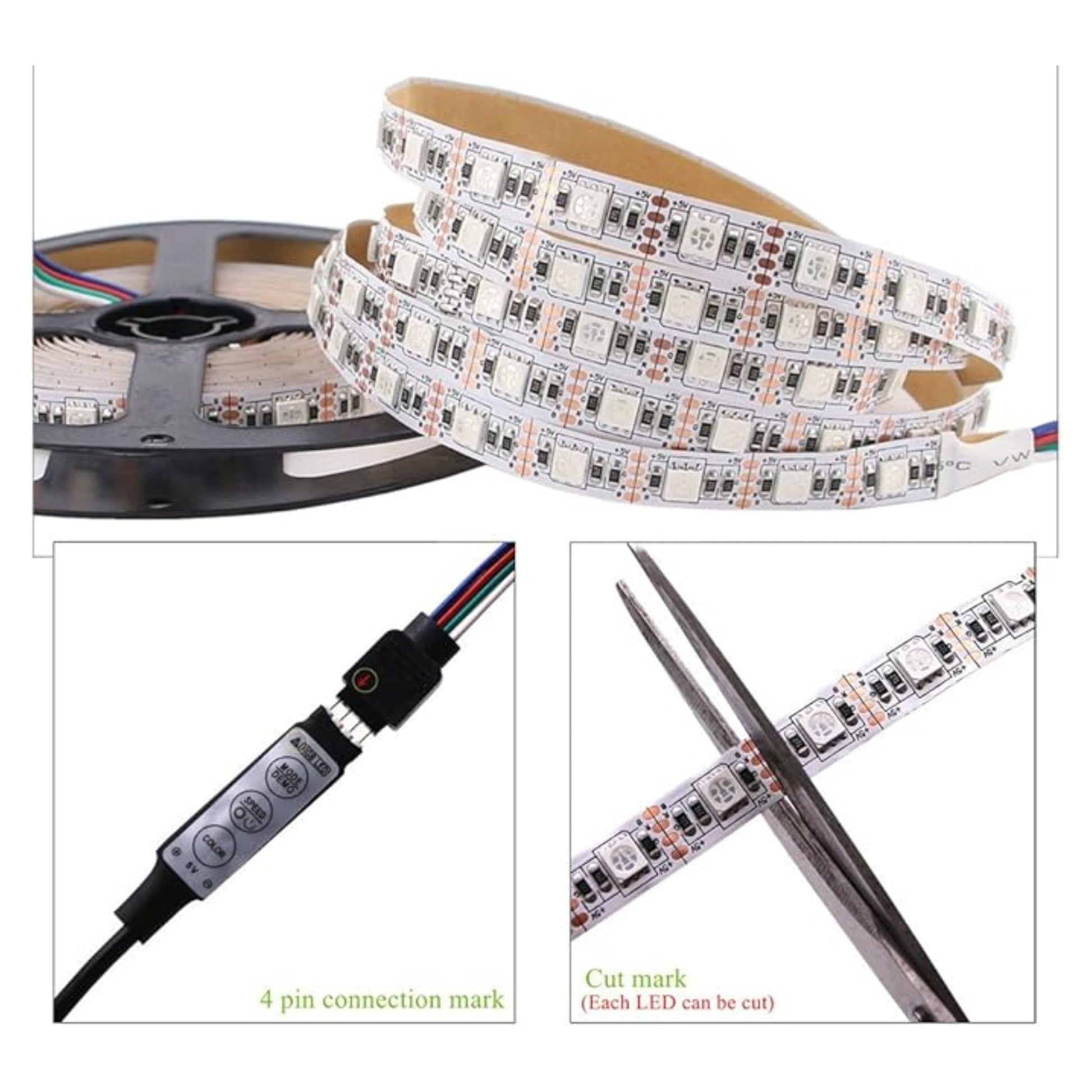 Add vibrant colour to any space with the 2M 5050 Waterproof RGB LED Strip Light. This flexible strip features 30 bright LEDs and a waterproof design, making it perfect for indoor or covered outdoor decoration. Use it to set the mood for holidays, home ambiance, or parties. The color-changing feature creates stunning visual effects, while the durable 5050 SMD LEDs ensure long-lasting performance. Whether you're decorating a living room, staircase, window, or for Christmas celebrations, this light strip delivers both function and fun.