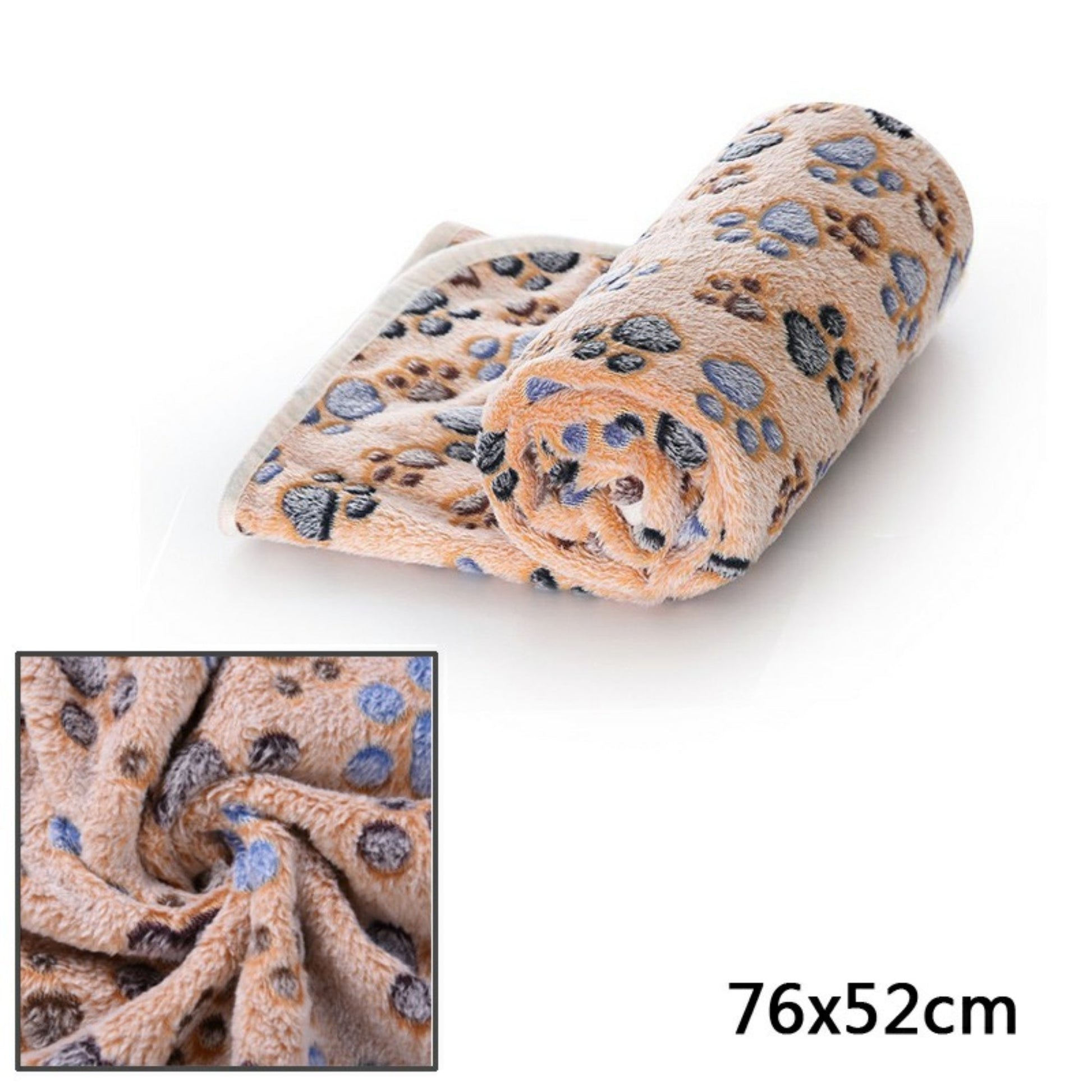 76x52cm Warm Paw Print Pet Fleece Blanket Brown Soft Bed Cover