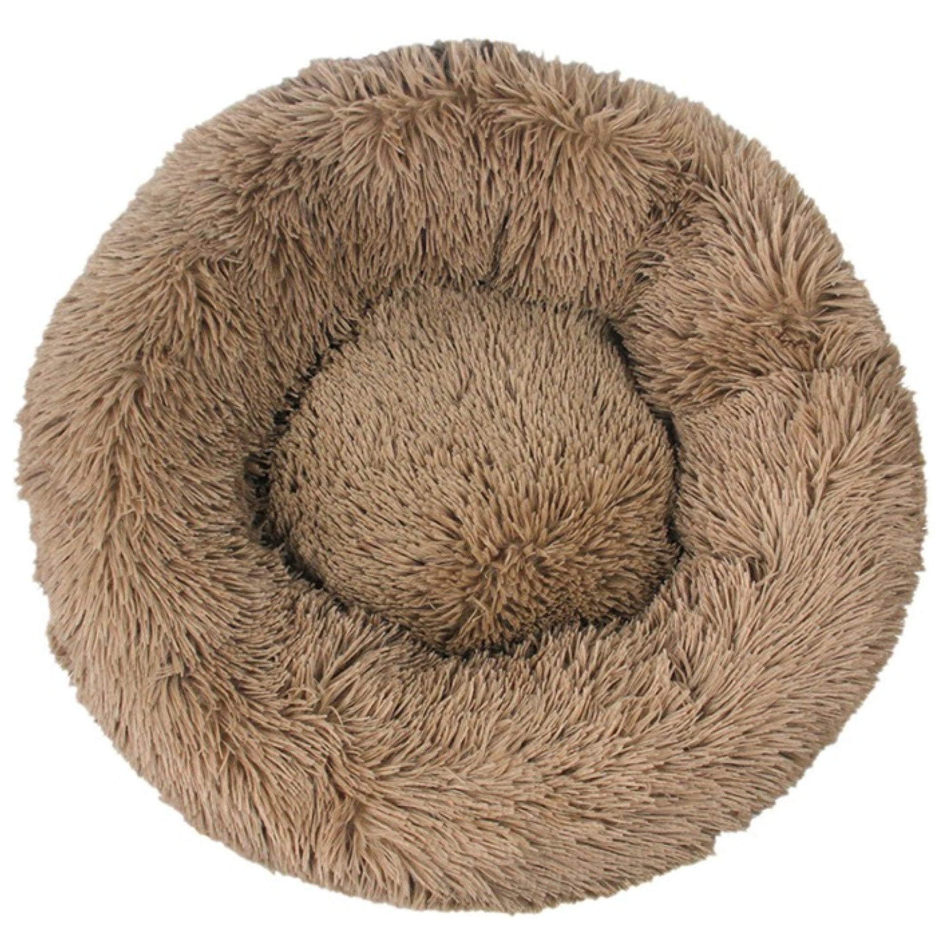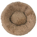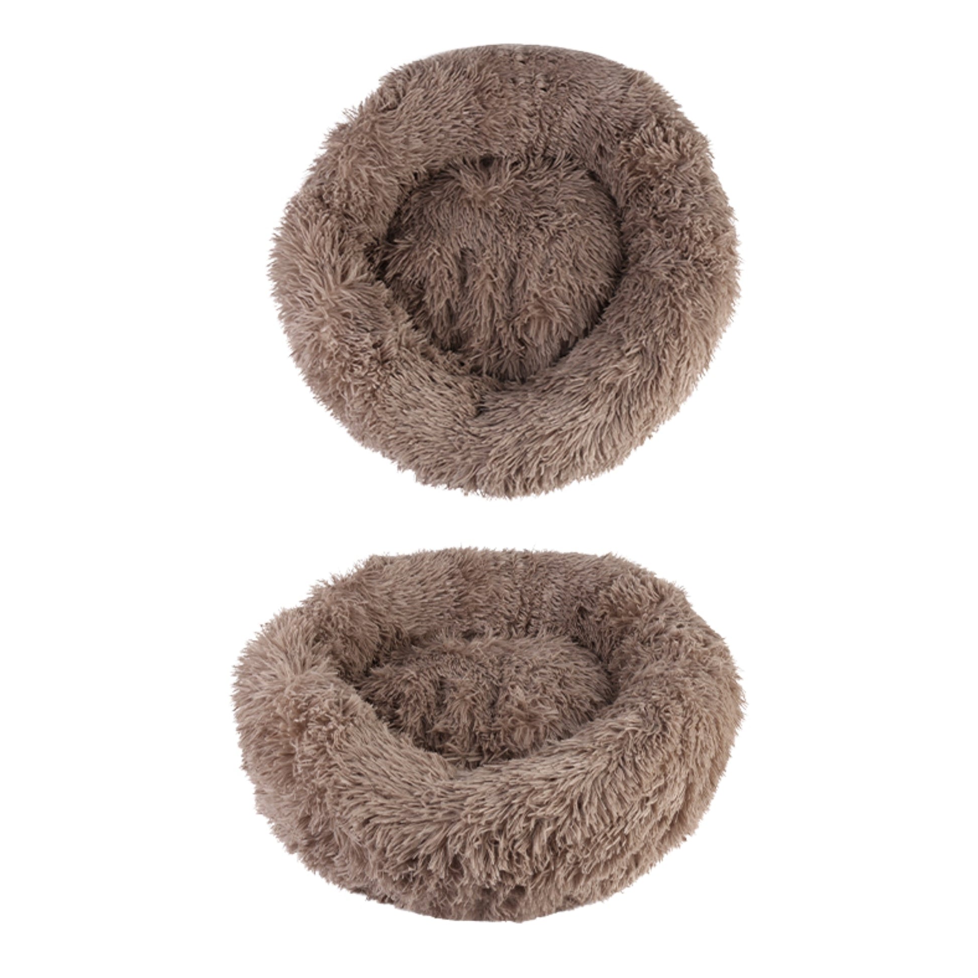 Calming Plush Round Pet Bed for Cats & Dogs – Non-Removable Cushion – Khaki & Grey