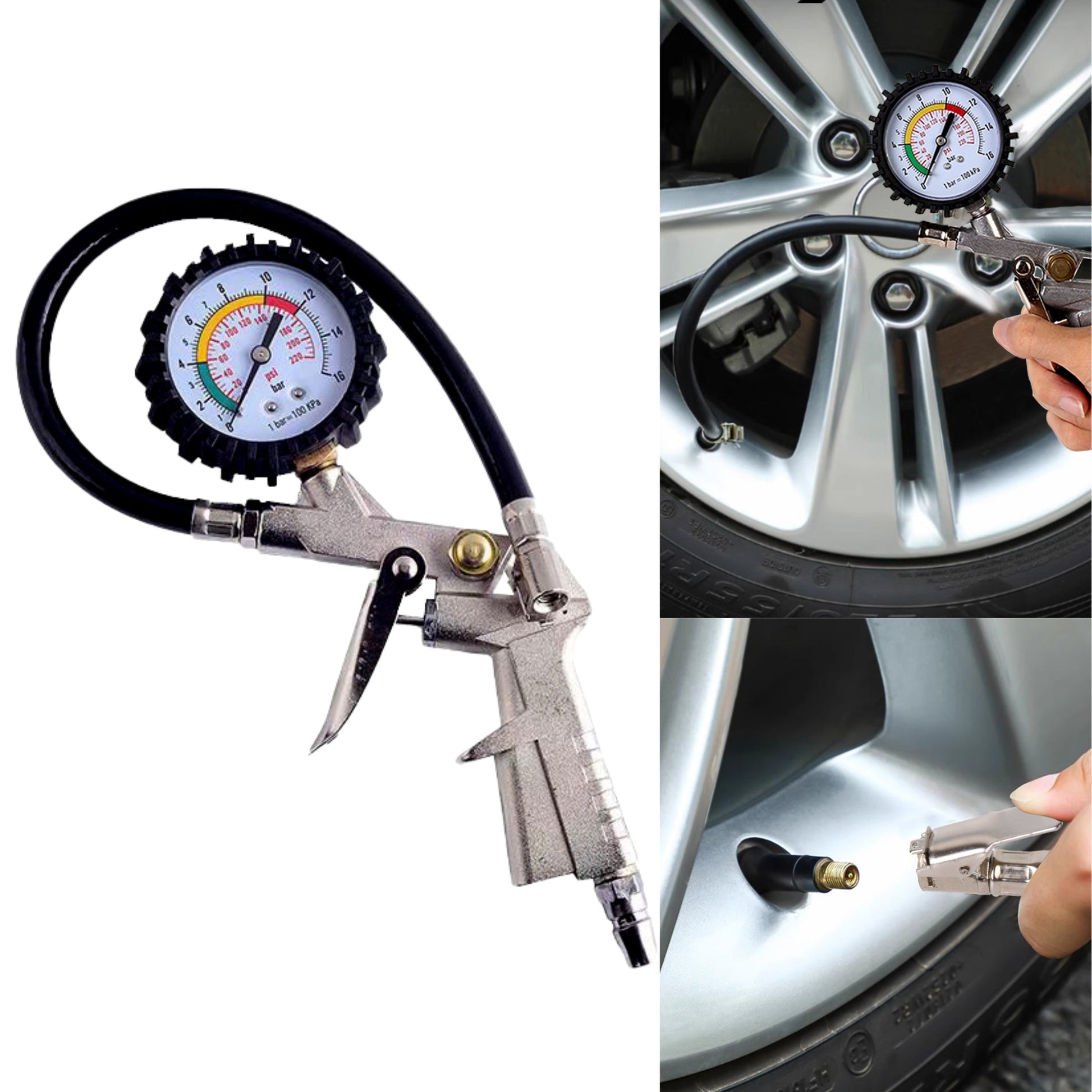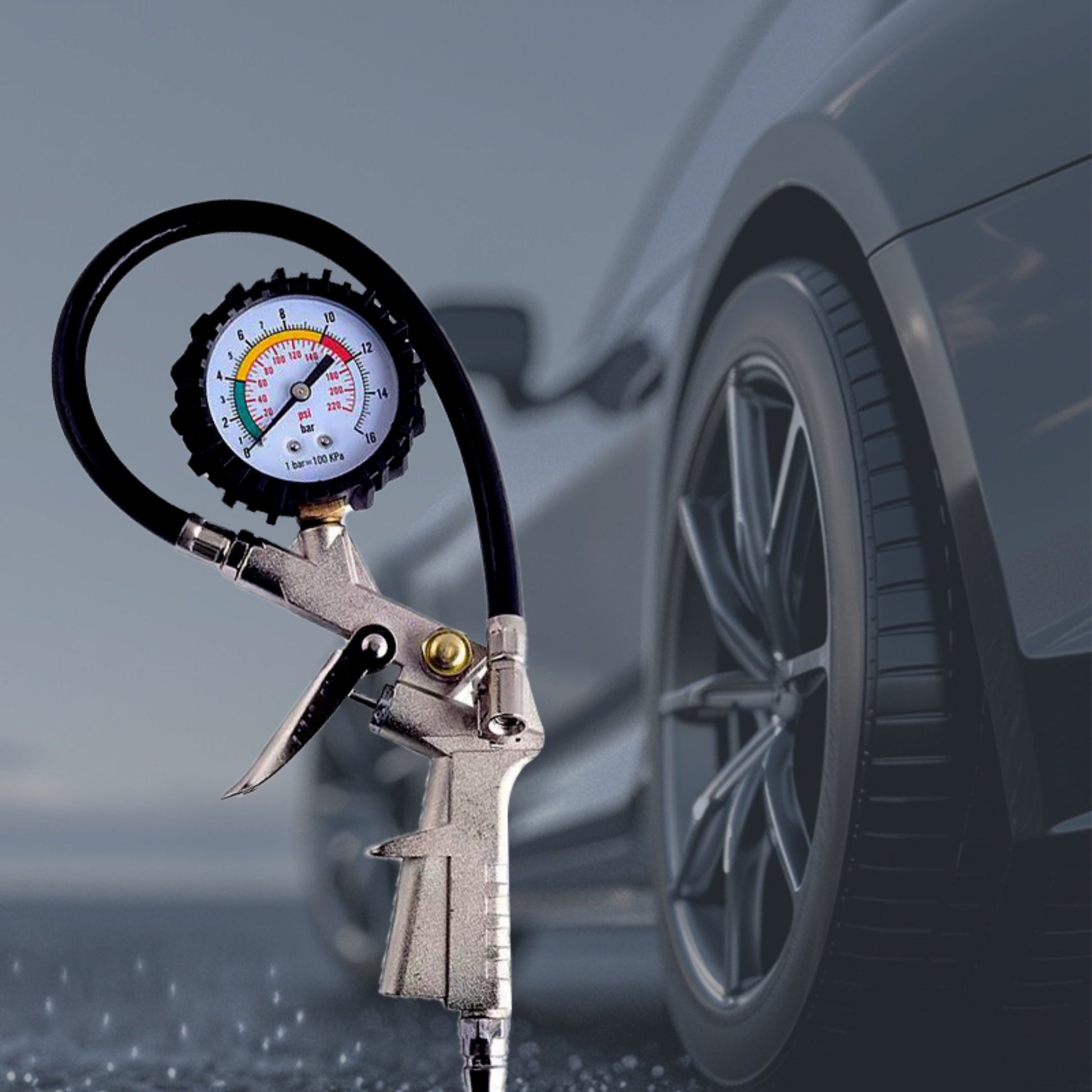 2-in-1 Tool – Combines a tire inflator and built-in pressure gauge