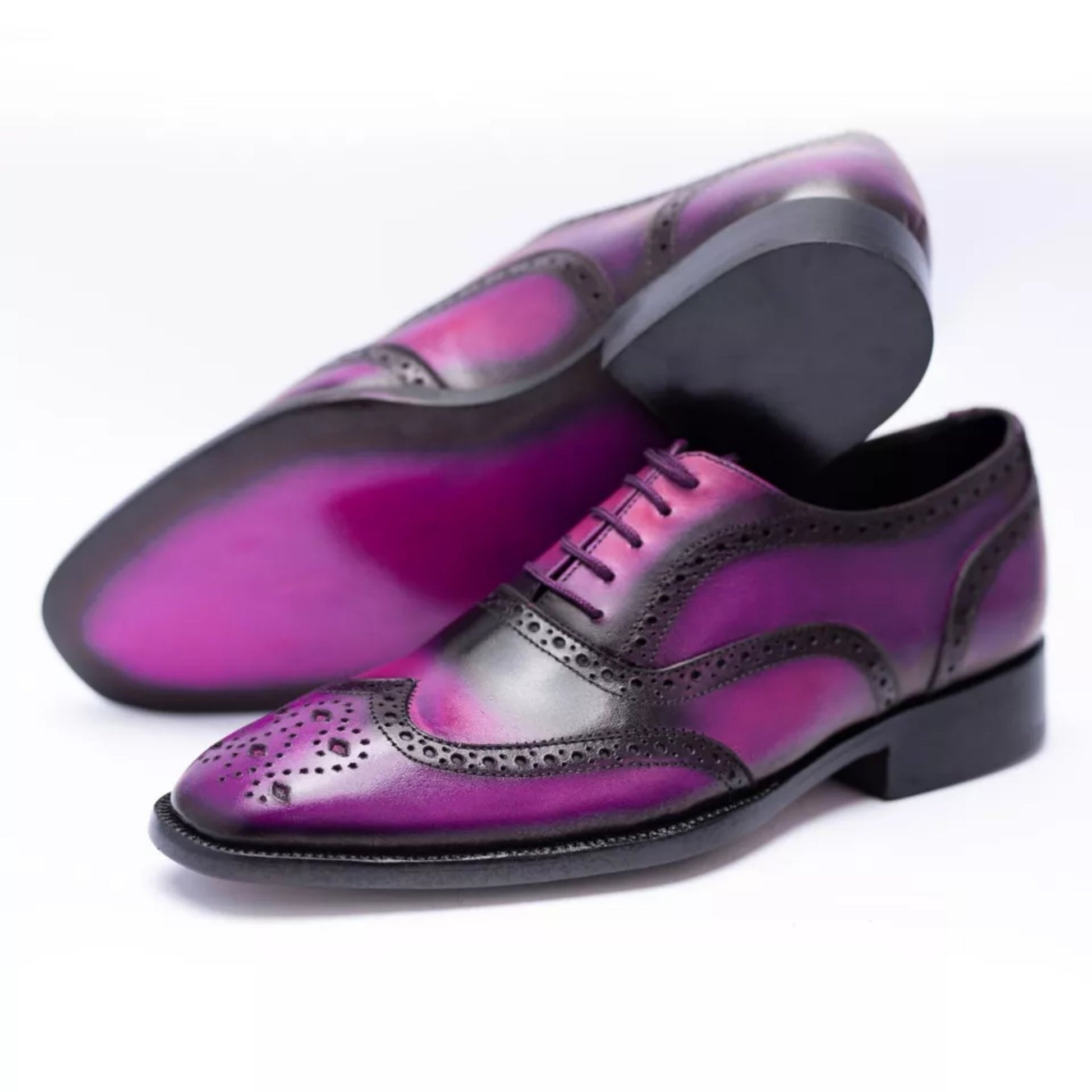 Bespoke Two-Tone Purple Leather Wingtip Brogue Oxford Dress Shoes - Handmade