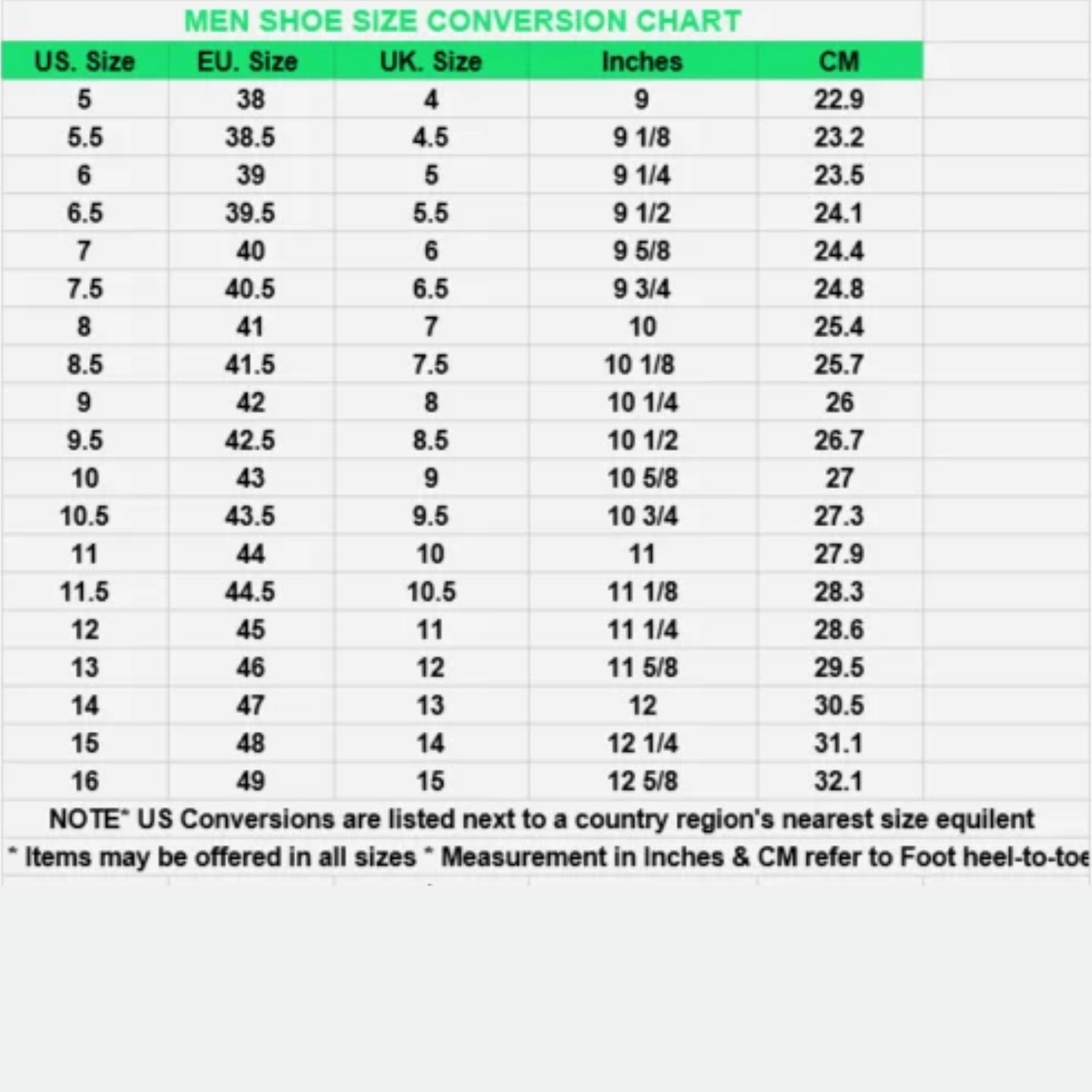 What are your sizing options?