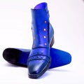 Handmade Blue Leather Ankle Dress Boots - Zipper & Buckle Closure Formal Boot