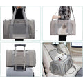 - The pet bag cannot only be held in the car with a seat belt and hung on the luggage with a trolley pouch, but can also be held with top handle and shoulder strap. Convenient for traveling, pet daily living, or going to pet hospital.