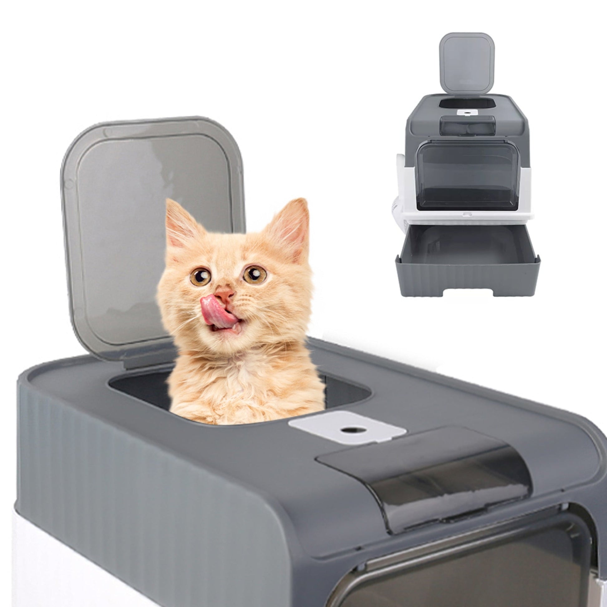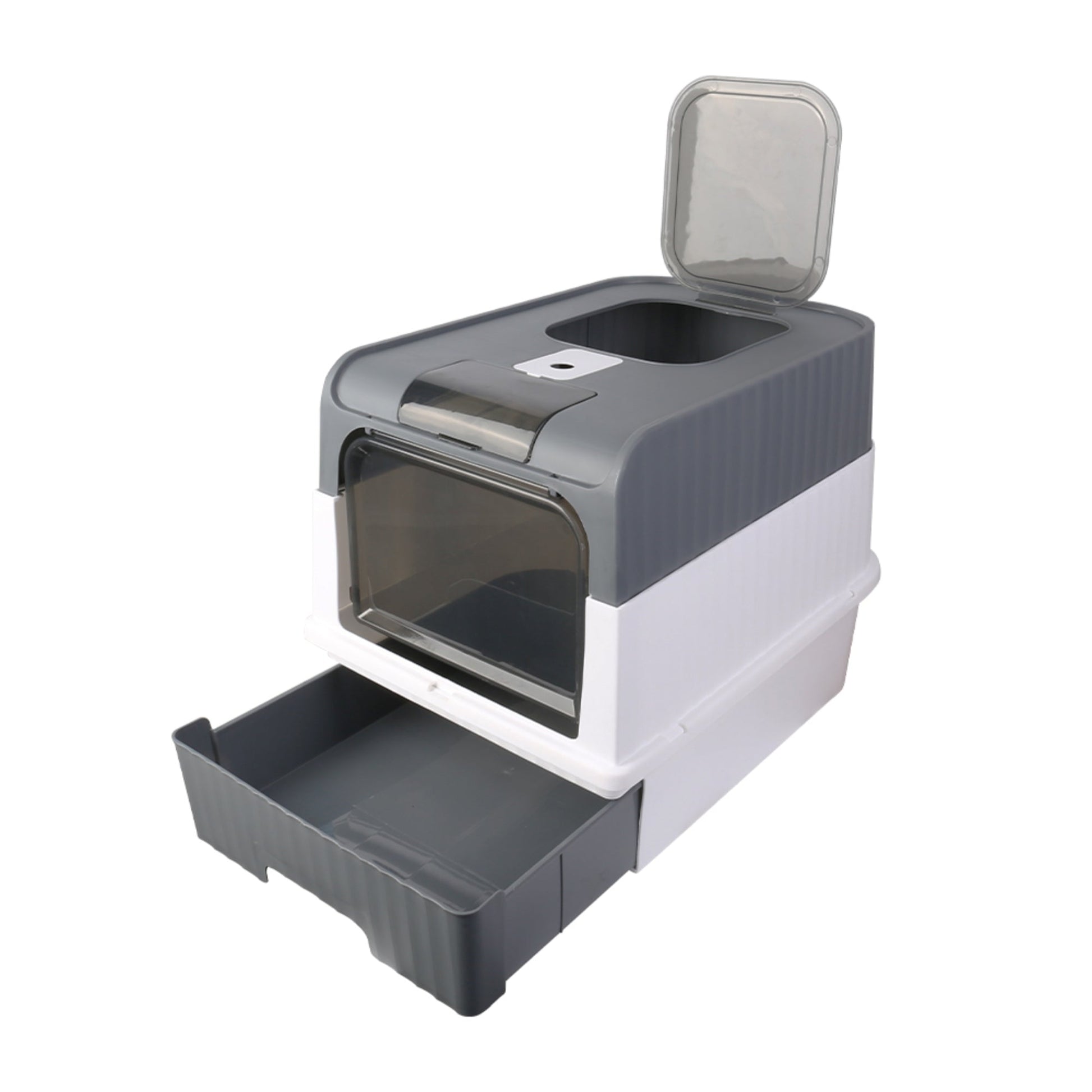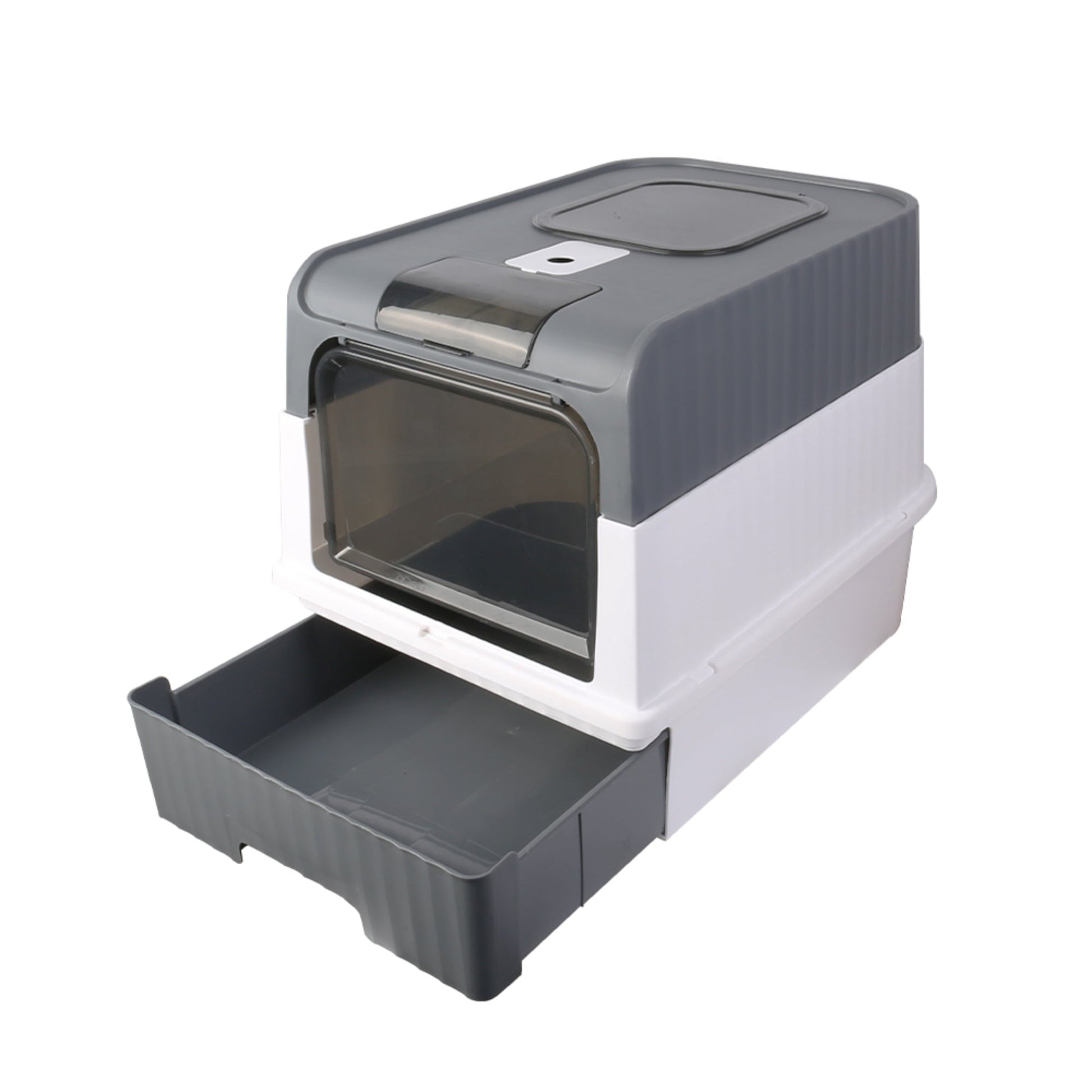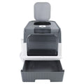 Large Grey Cat Litter Box with Drawer Self Cleaning Design for Indoor Cats