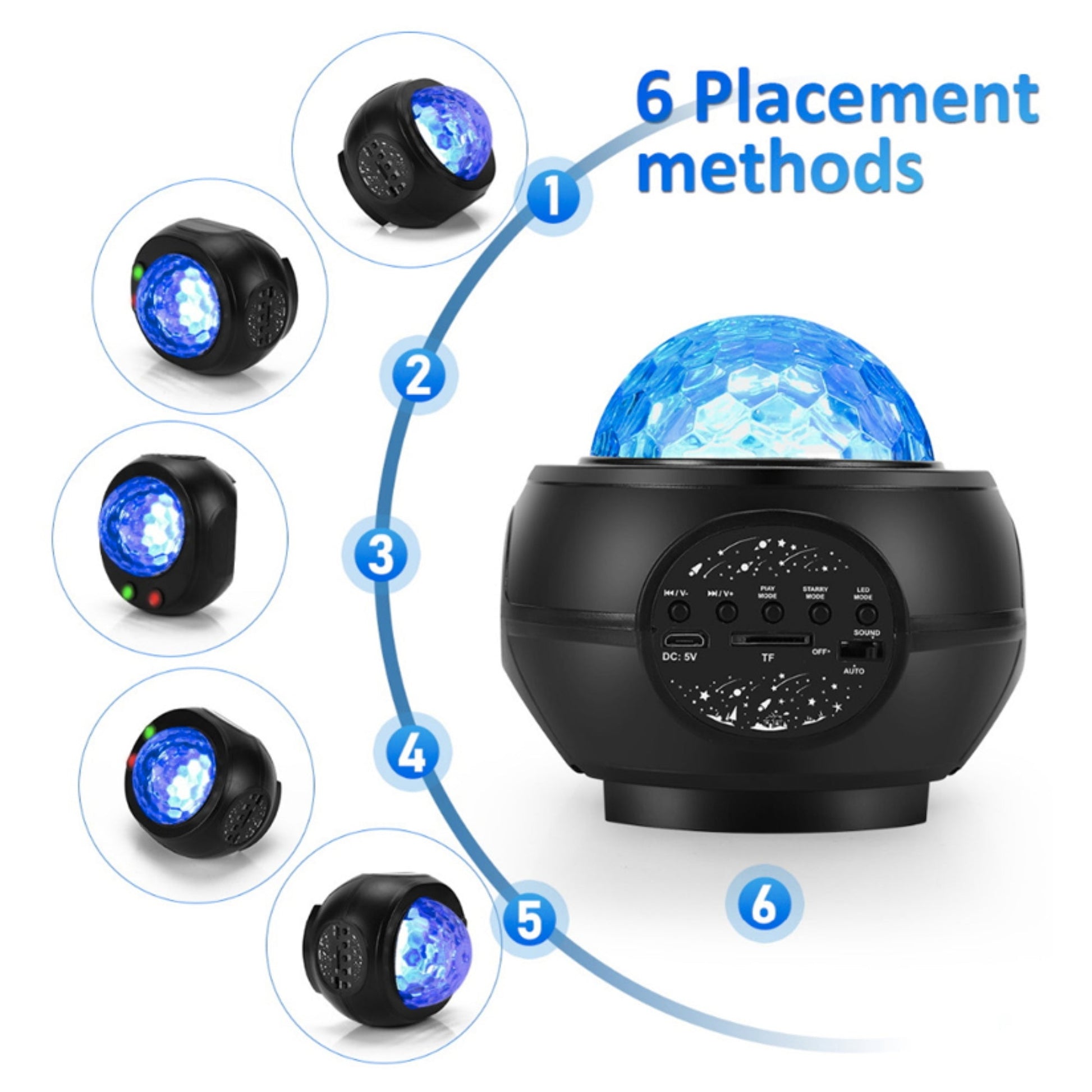 Whether you're planning a party, setting the mood for bedtime, or simply want to unwind with soothing music and visuals, this projector does it all. It features built-in music playback, multiple light modes, and a sleek black finish to complement any room.