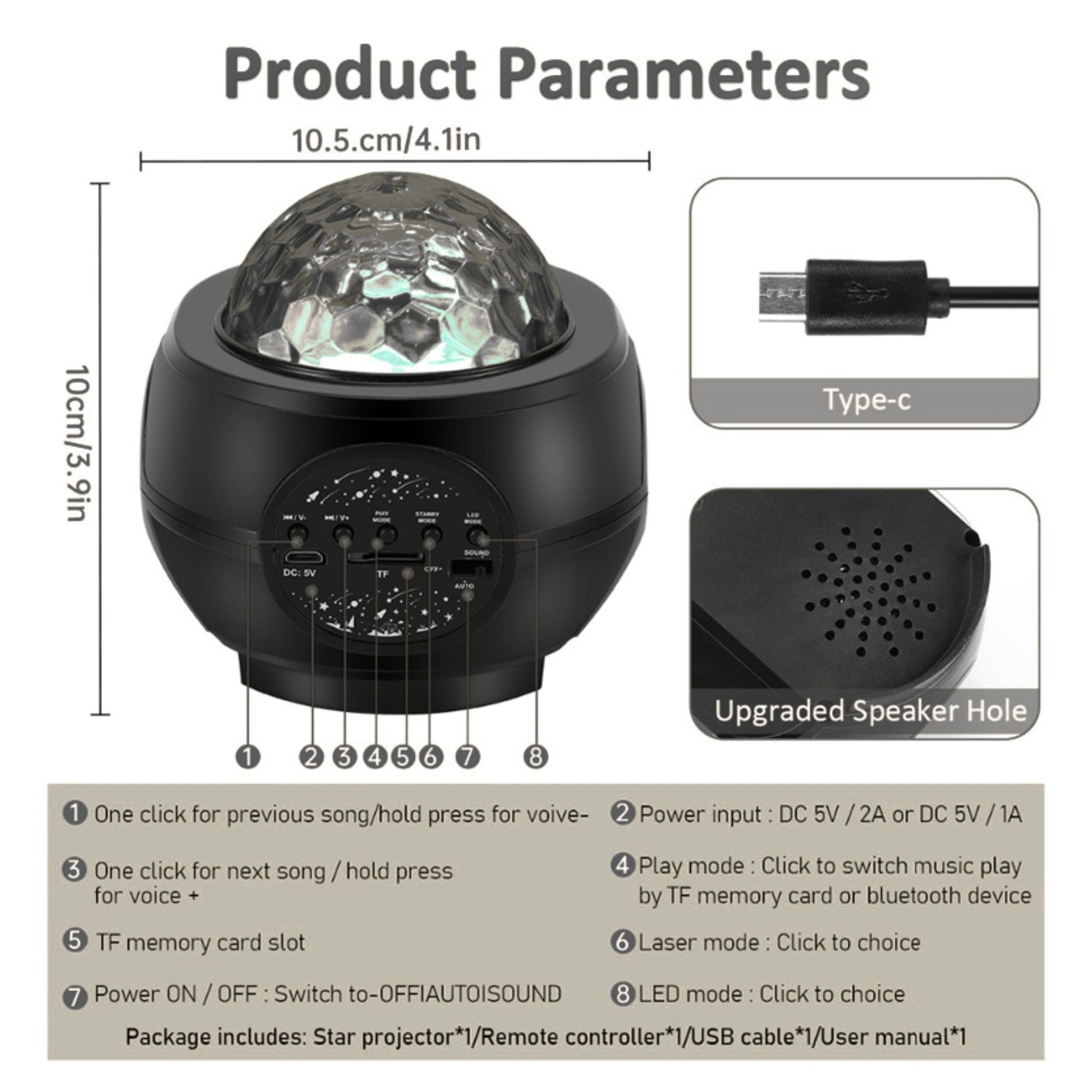 - Function: Star/nebula projection, music playback
