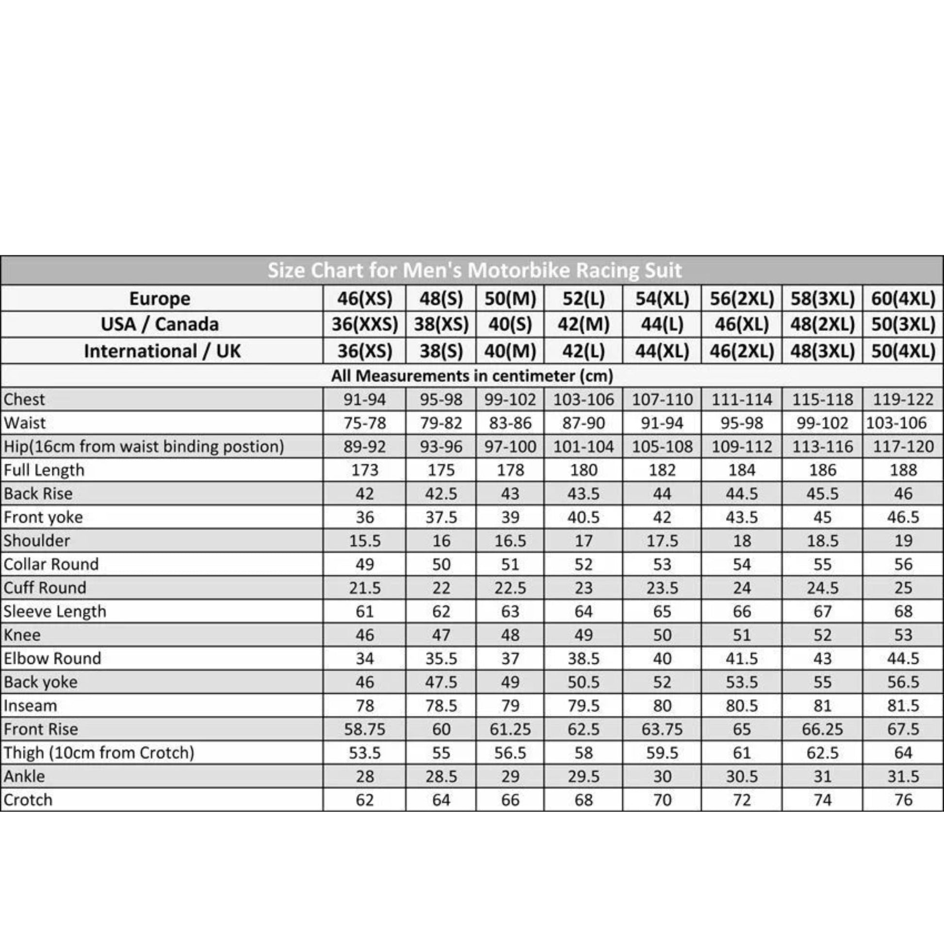 This suit includes removable CE professional protectors on elbows, shoulders, back, knees, and hips, as well as knee sliders for added safety. Features include a back speed hump (optional), original YKK zipper, inside chest pocket, stretch panels at the waist, pre-curved arms, full-inch zipper connection for leather trousers, and tightened waist panels for a racer-ready fit.
