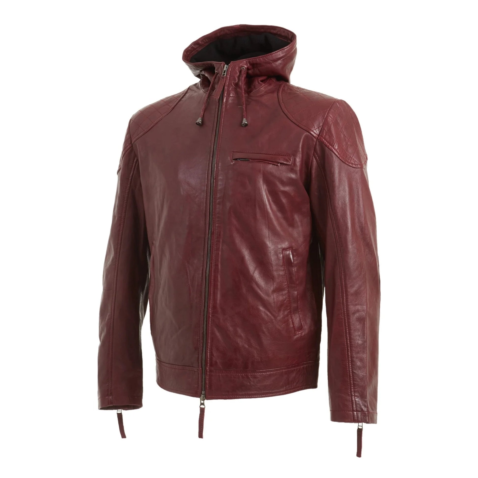 Men’s Maroon Hooded Genuine Leather Jacket