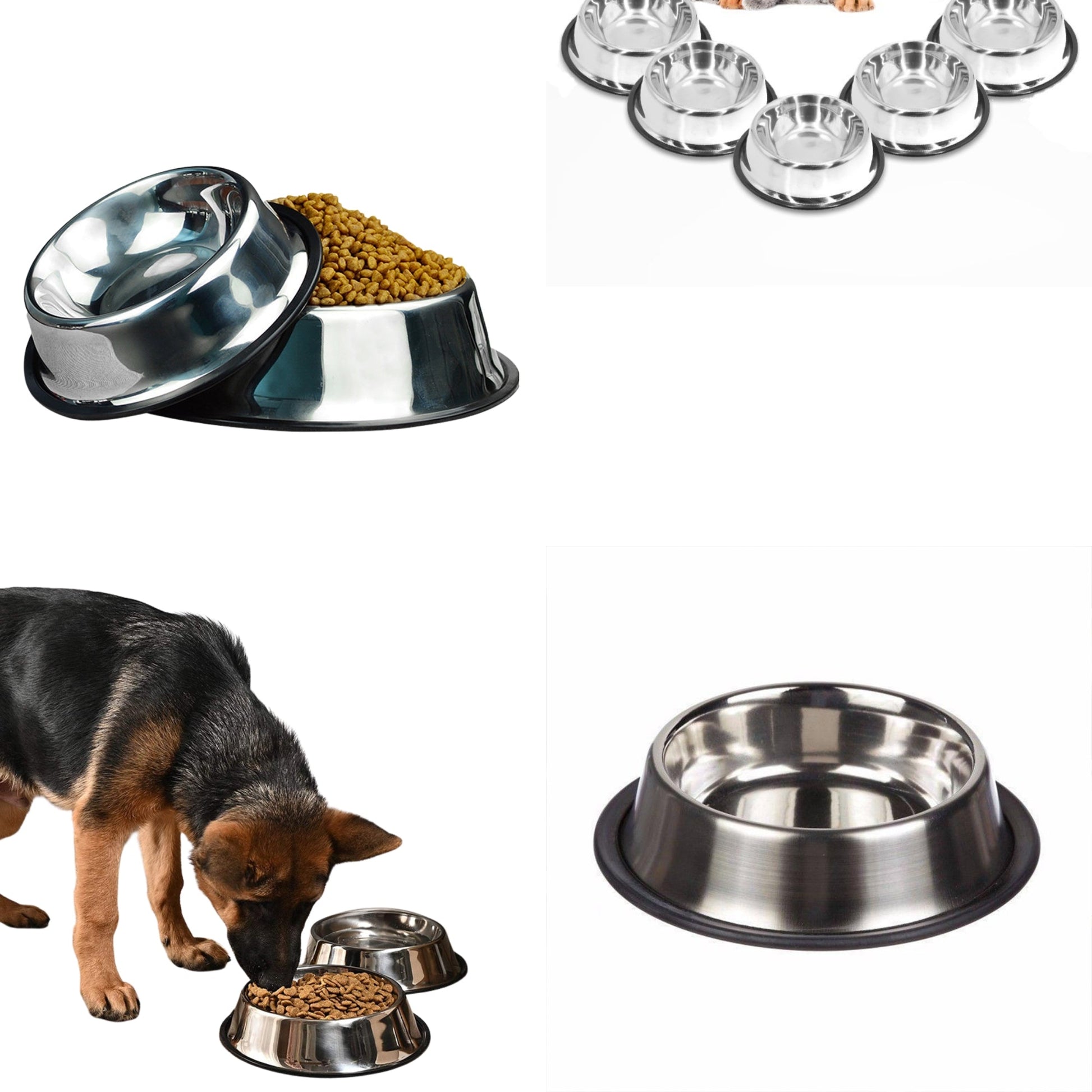 - Durable stainless-steel food bowls for puppies, dogs, cats, or kittens.