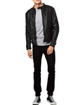 Premium Men's Black Moto Style Leather Jacket - Full Zip Collarless Biker Coat (Available in Custom Sizes)