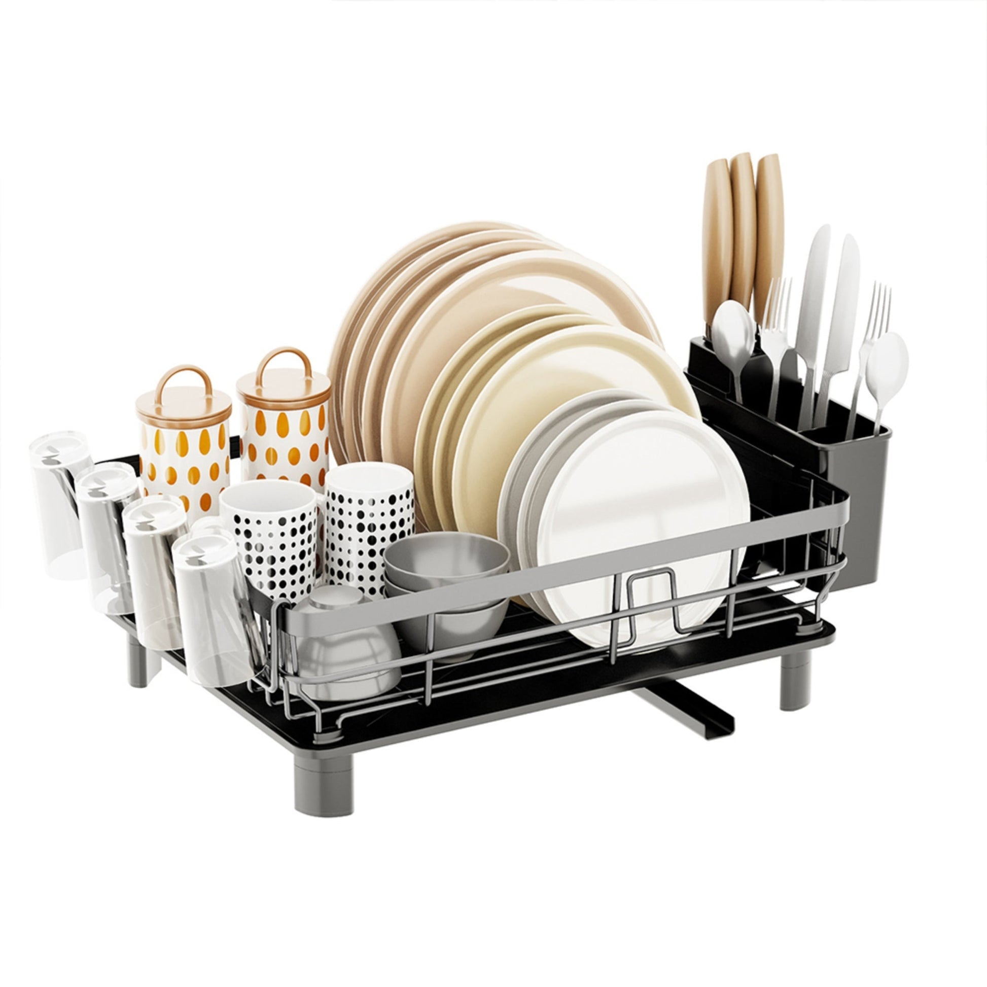 Premium Stainless Steel Dish Drying Rack – Drip Tray & Utensil Holder Included