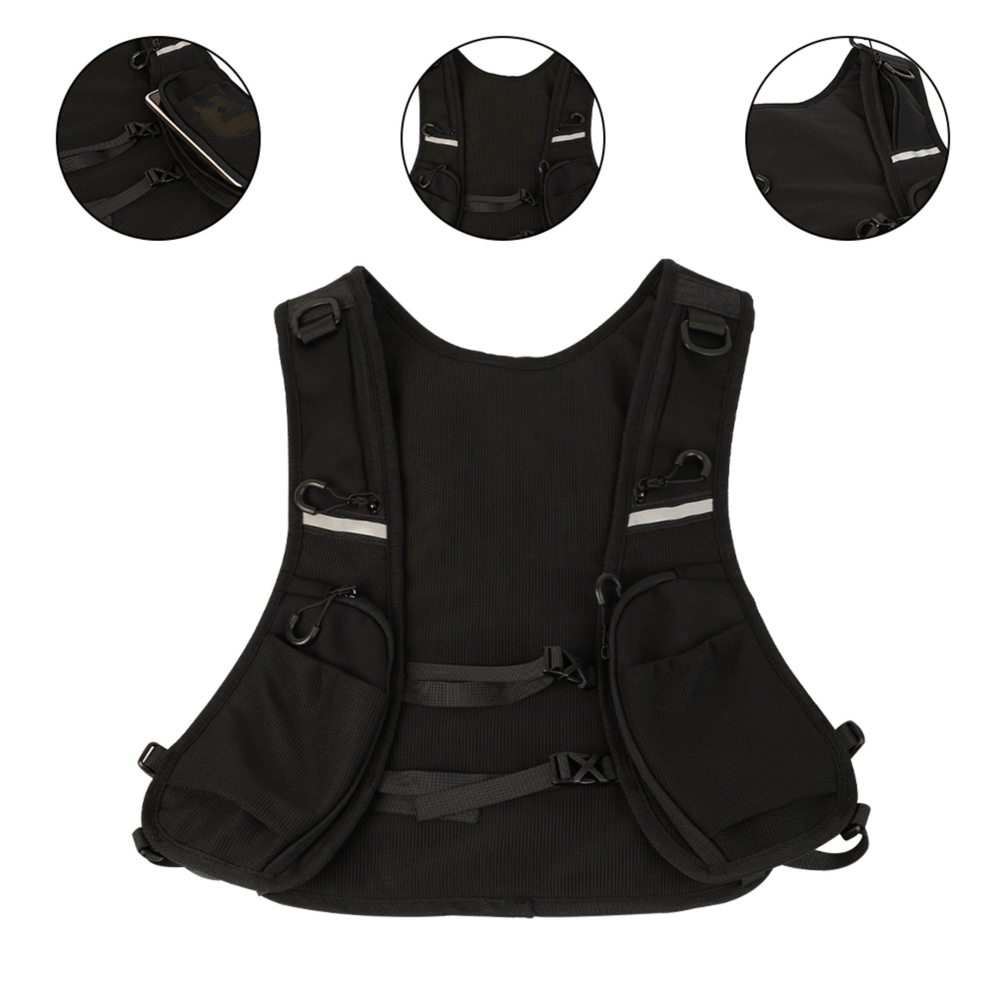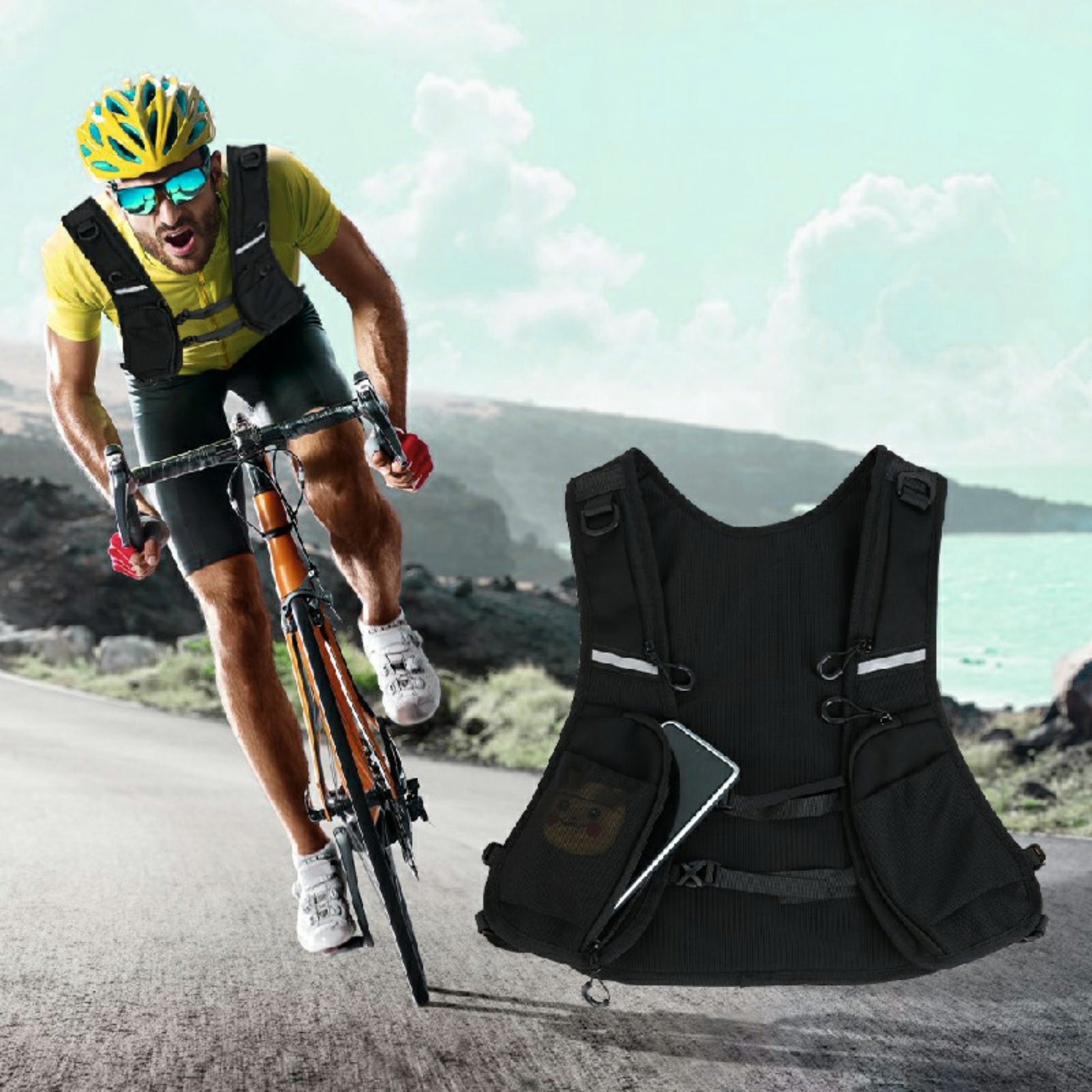 Stay safe, light, and hydrated with the Reflective Hydration Running & Cycling Vest Backpack Black. Designed for endurance sports, this ultra-light vest offers a bounce-free fit and convenient storage for your essentials. Featuring reflective strips for added nighttime visibility and a hydration-bladder-compatible pocket, it's perfect for running, cycling, hiking, or trail adventures. Multiple compartments hold everything from phones to snacks, while adjustable straps ensure a snug, custom fit.