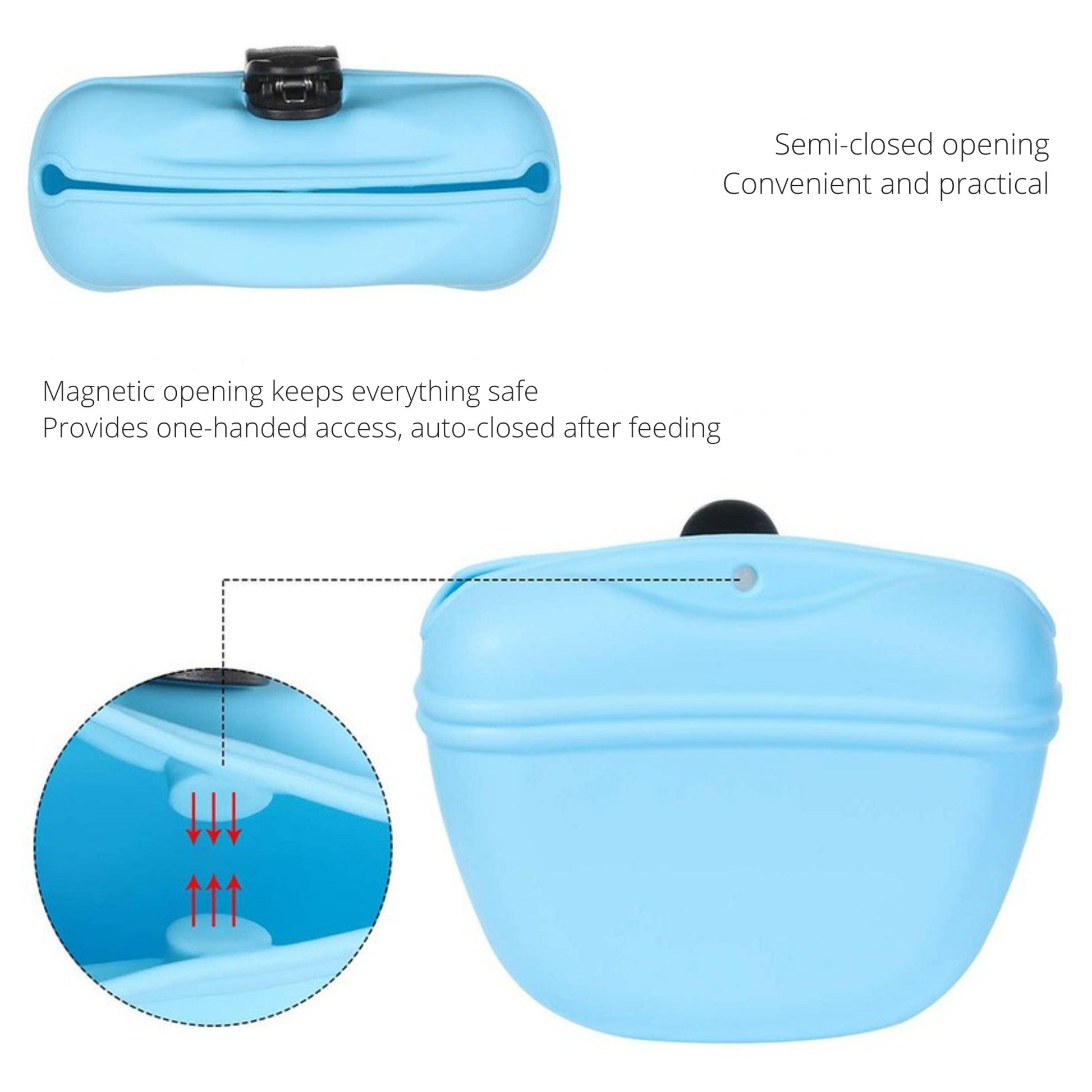 Make dog training and walks easier with our Outdoor Silicone Pet Treat Bag. Designed for pet parents and trainers on the go, this compact and lightweight pouch makes storing and accessing treats effortless. With a semi-closed magnetic opening, you can quickly reach for treats while keeping them secure and fresh. Whether you're out for a walk or mid-training session, this pouch is your ideal hands-free helper.