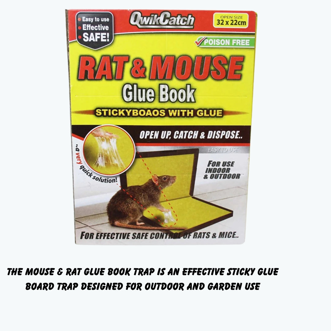 Say goodbye to unwanted pests with the Strong and Sticky Quick Catch Rat Glue Book – your reliable, poison-free solution for catching mice and rats both indoors and outdoors. Designed for safety, strength, and simplicity, this glue trap delivers maximum performance without harmful chemicals. Perfect for use in homes, kitchens, basements, garages, or warehouses, the 32cm x 22cm size offers a large surface to catch rodents fast. The foldable book design makes it easy to place in tight corners or lay flat in open areas.